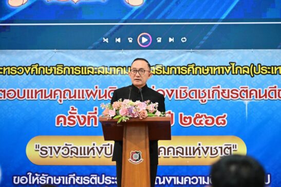 พิธีมอบใบประกาศเกียรติคุณและโล่ประกาศเกียรติคุณ โครงการตอบแทนคุณแผ่นดิน ยกย่องเชิดชูเกียรติคนดีของสังคม กระทรวงศึกษาธิการและสมาคมส่งเสริมการศึกษาทางไกล (ประเทศไทย) ครั้งที่ 5 ประจำปี 2568